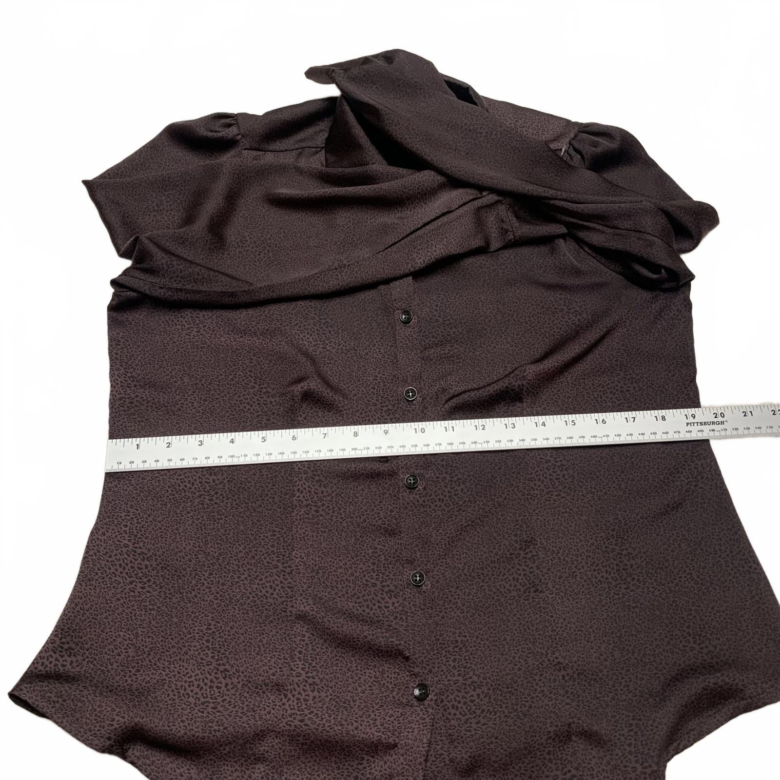 Elegant women's blouse by Mausner in a deep brown shade with subtle leopard print.
