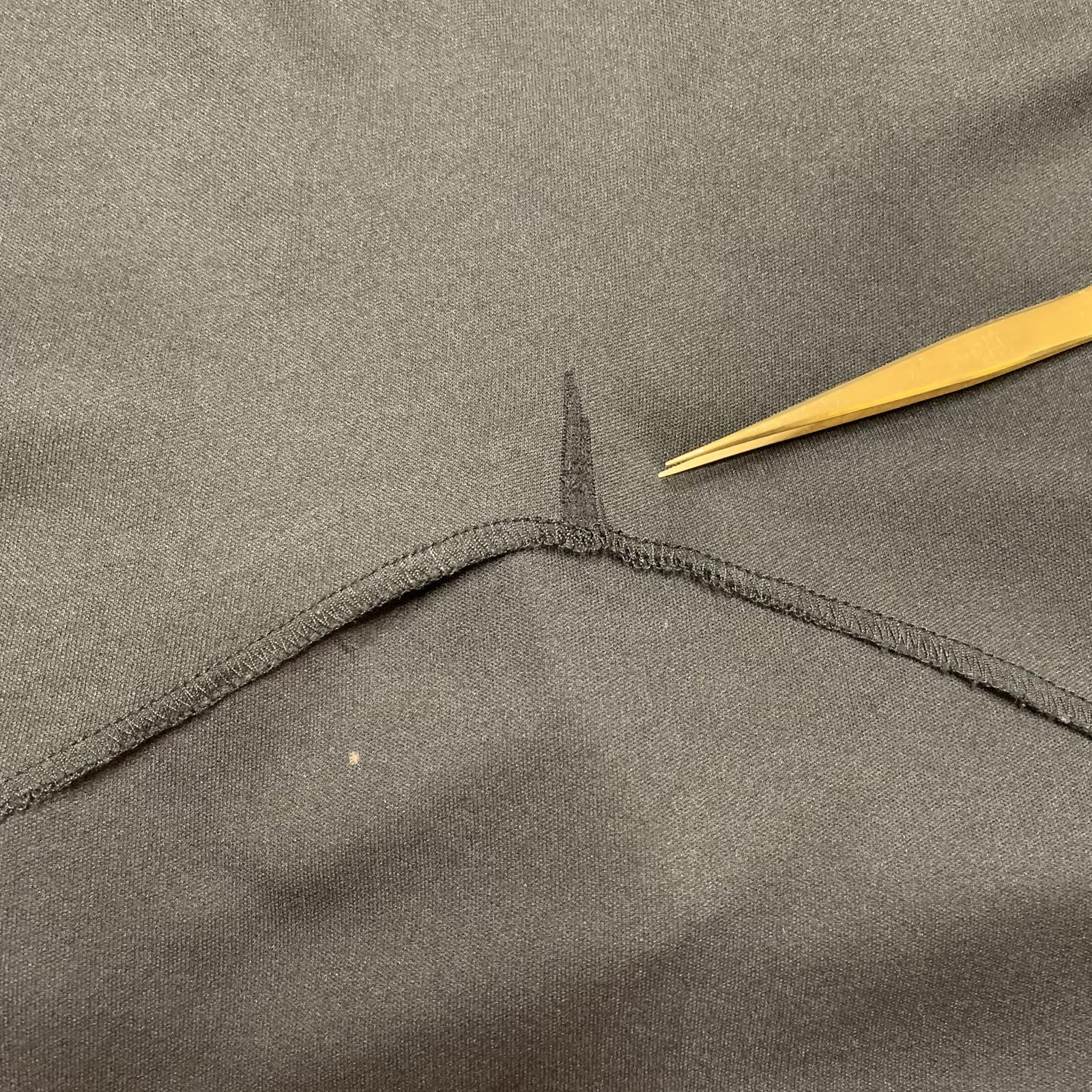 This skirt has a minor noticeable inside separation near the hemline . (See photo No.2) The skirt's lining has a small run, but it is not noticeable to the public.